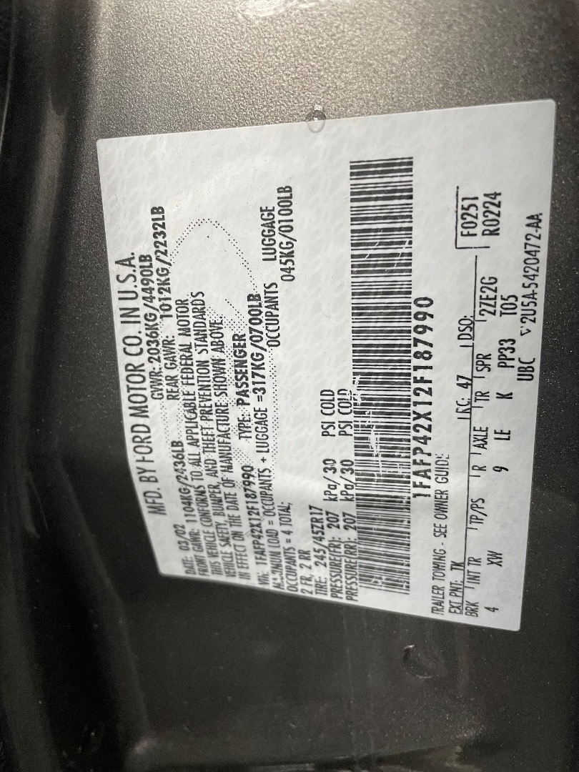 VIN #: 1FAFP42X12F187990