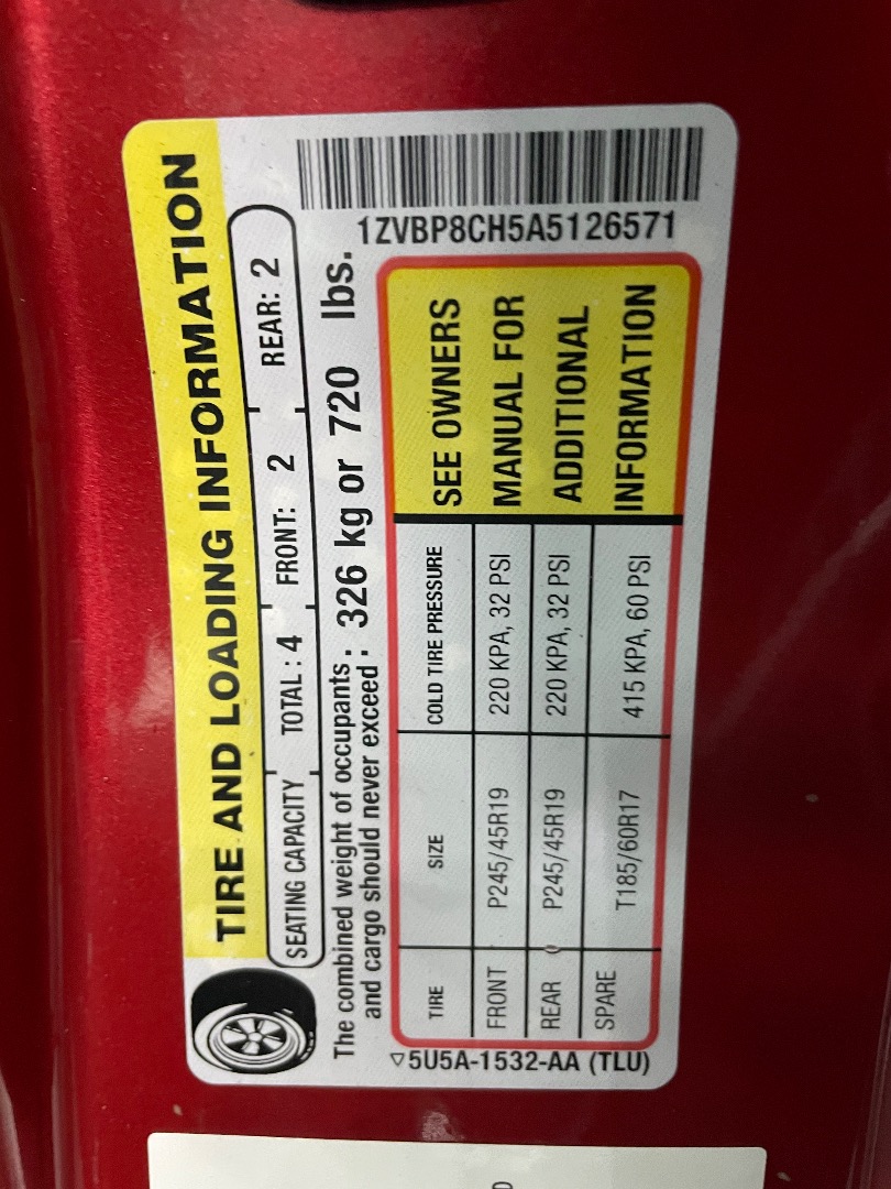 VIN #: 1ZVBP8CH5A5126571