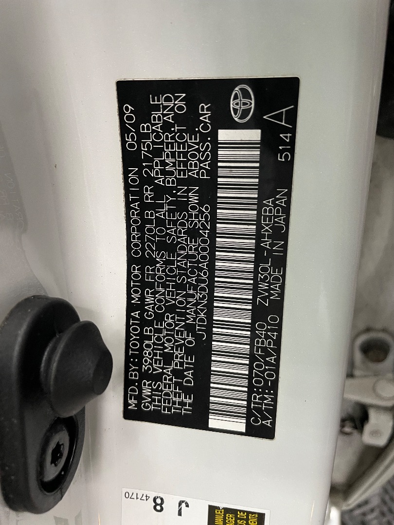 VIN #: JTDKN3DU6A0004256