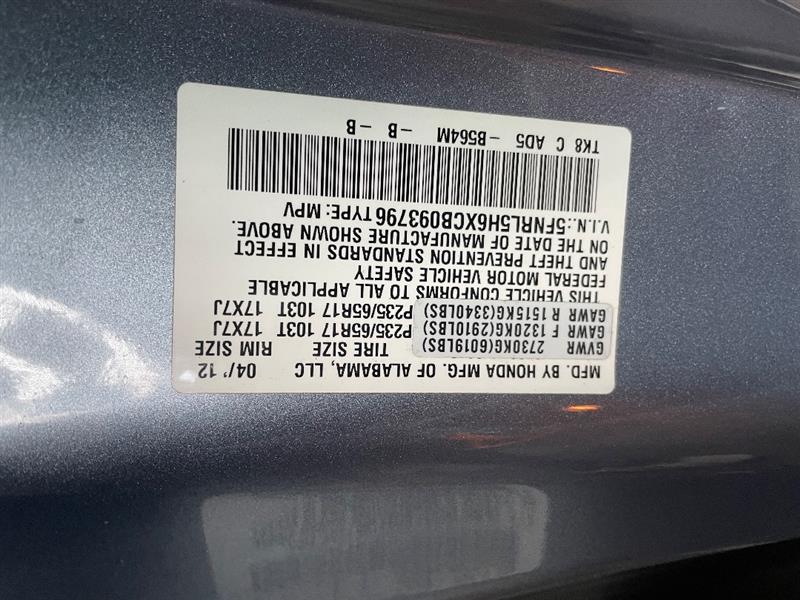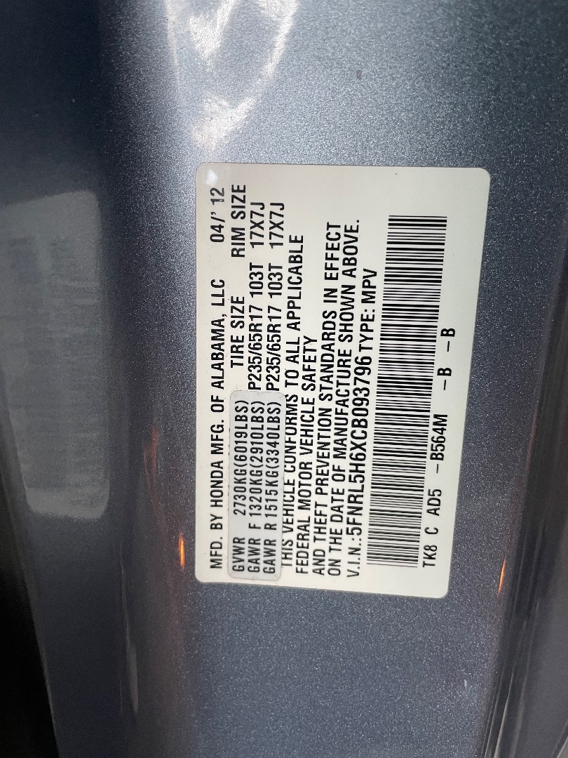 VIN #: 5FNRL5H6XCB093796