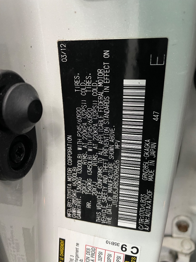 VIN #: JTEBU5JR8C5096826