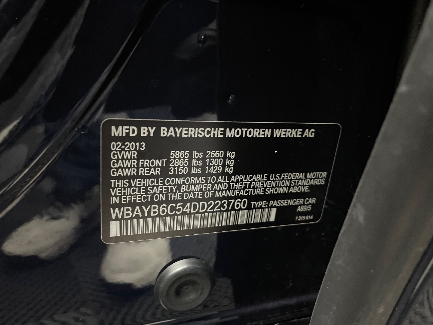 VIN #: WBAYB6C54DD223760