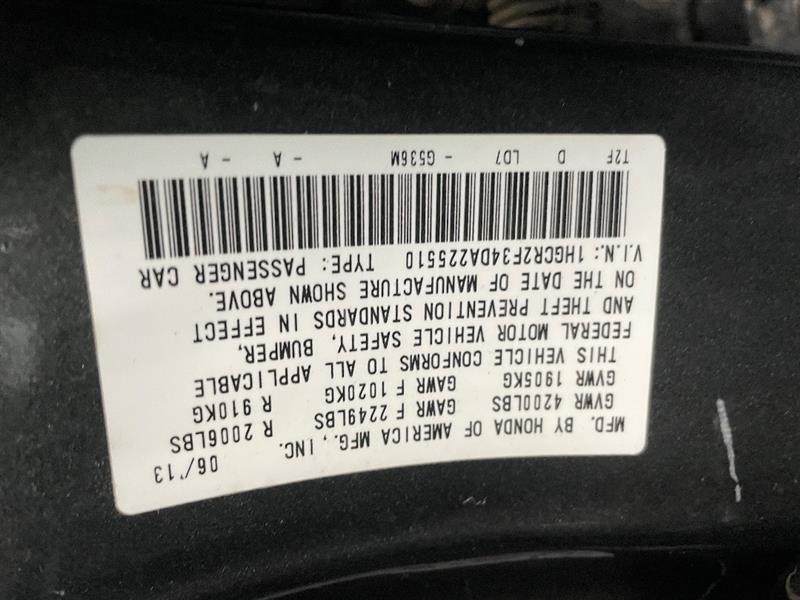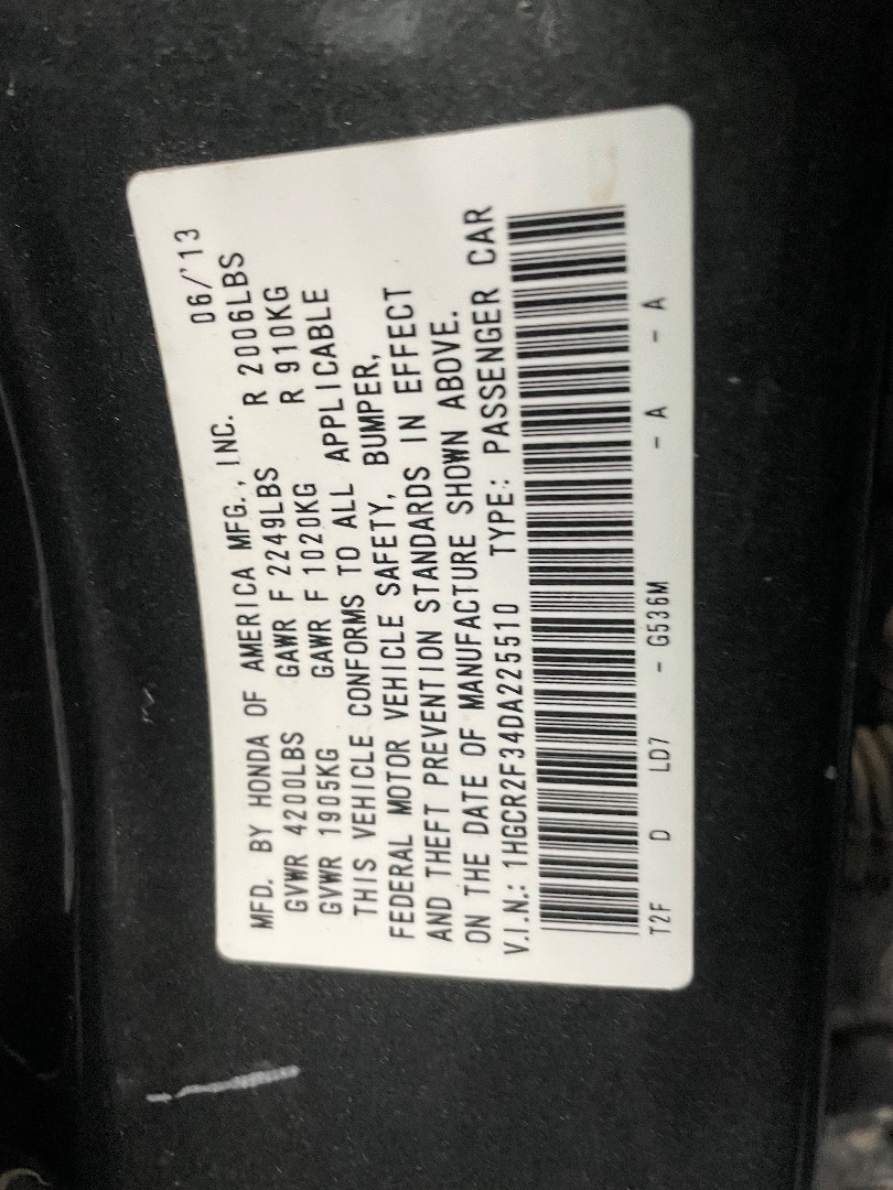 VIN #: 1HGCR2F34DA225510
