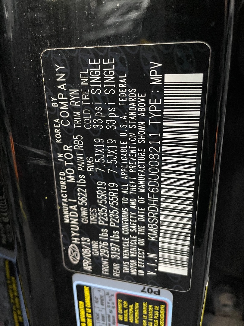 VIN #: KM8SRDHF6DU008211
