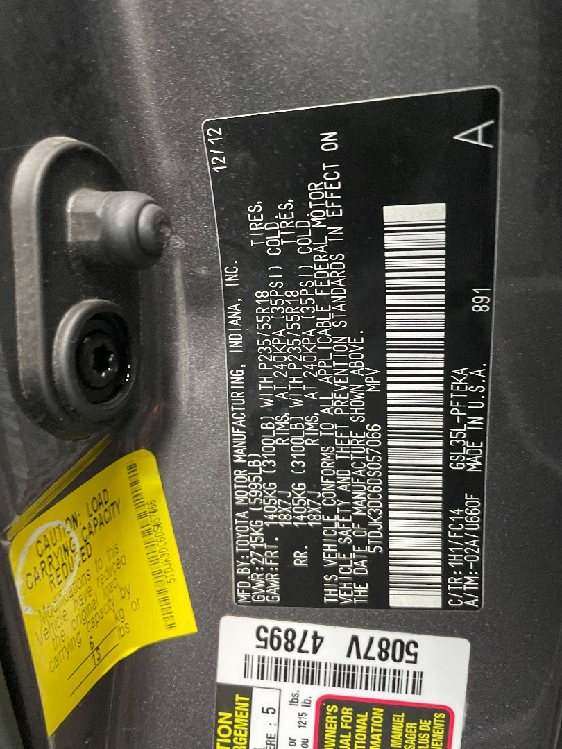 VIN #: 5TDJK3DC6DS057066