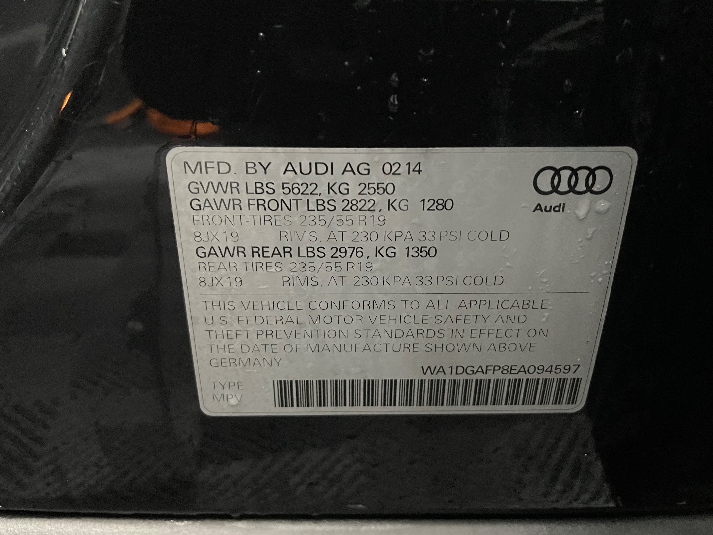 VIN #: WA1DGAFP8EA094597
