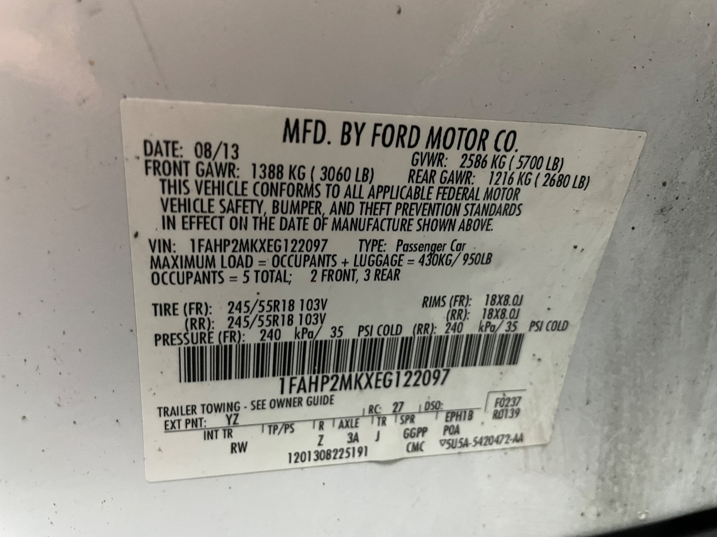 VIN #: 1FAHP2MKXEG122097