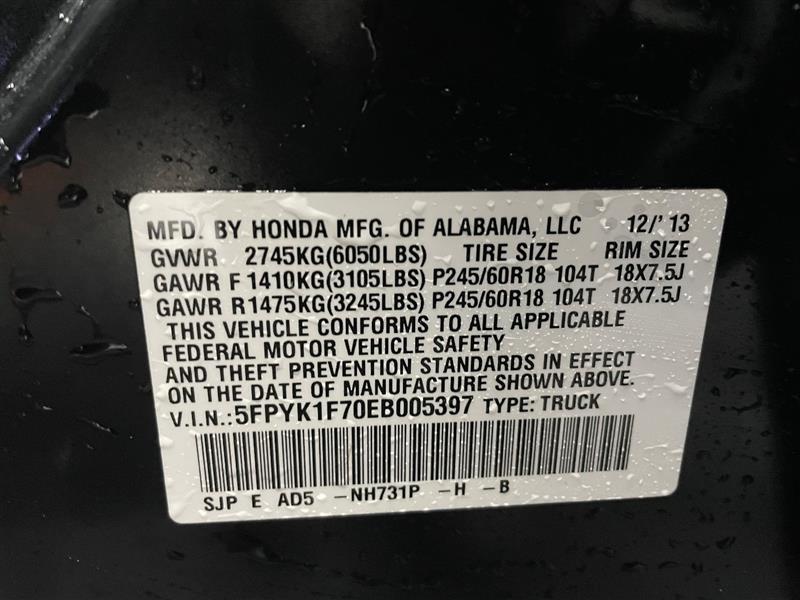 VIN #: 5FPYK1F70EB005397