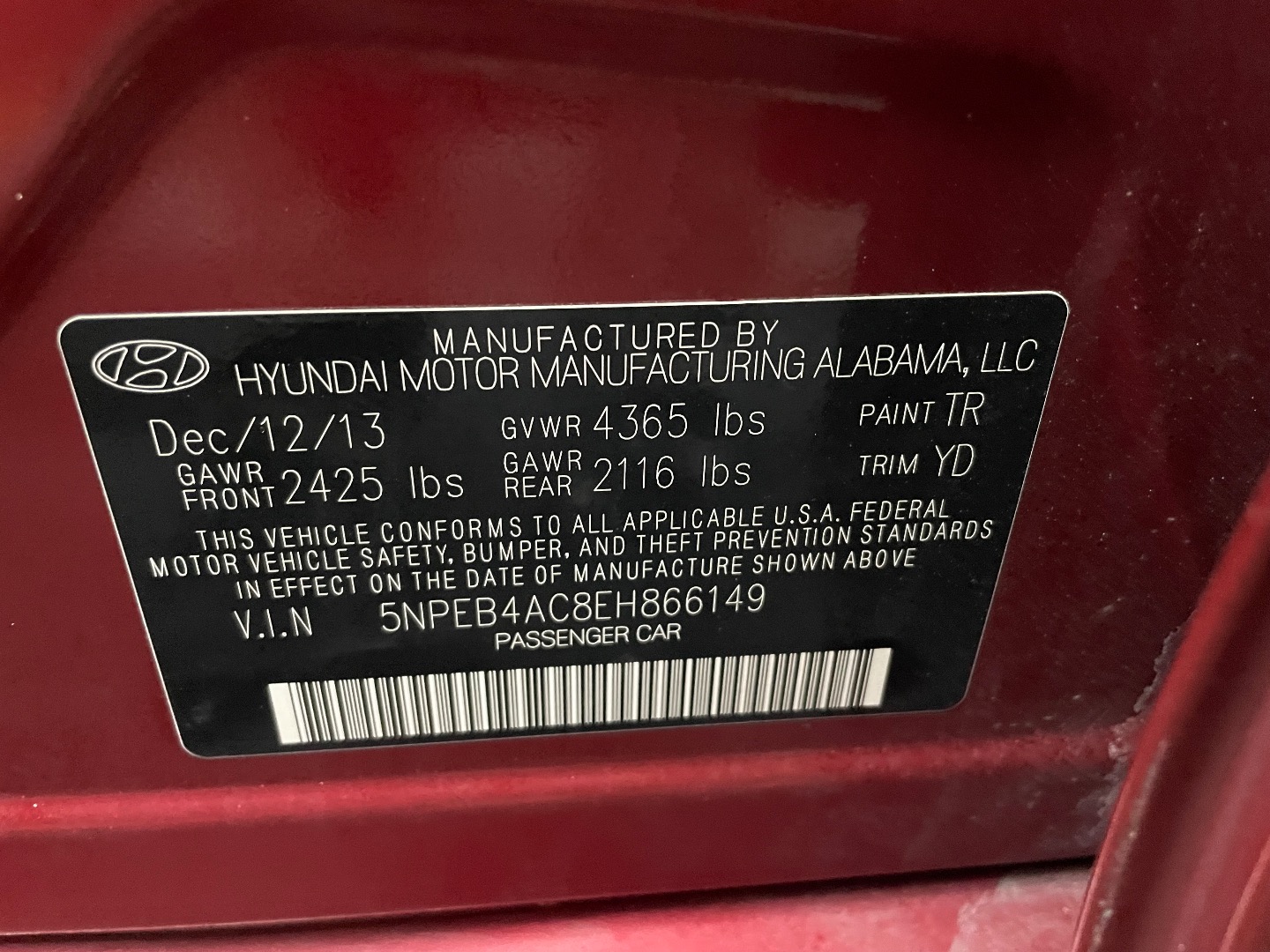 VIN #: 5NPEB4AC8EH866149