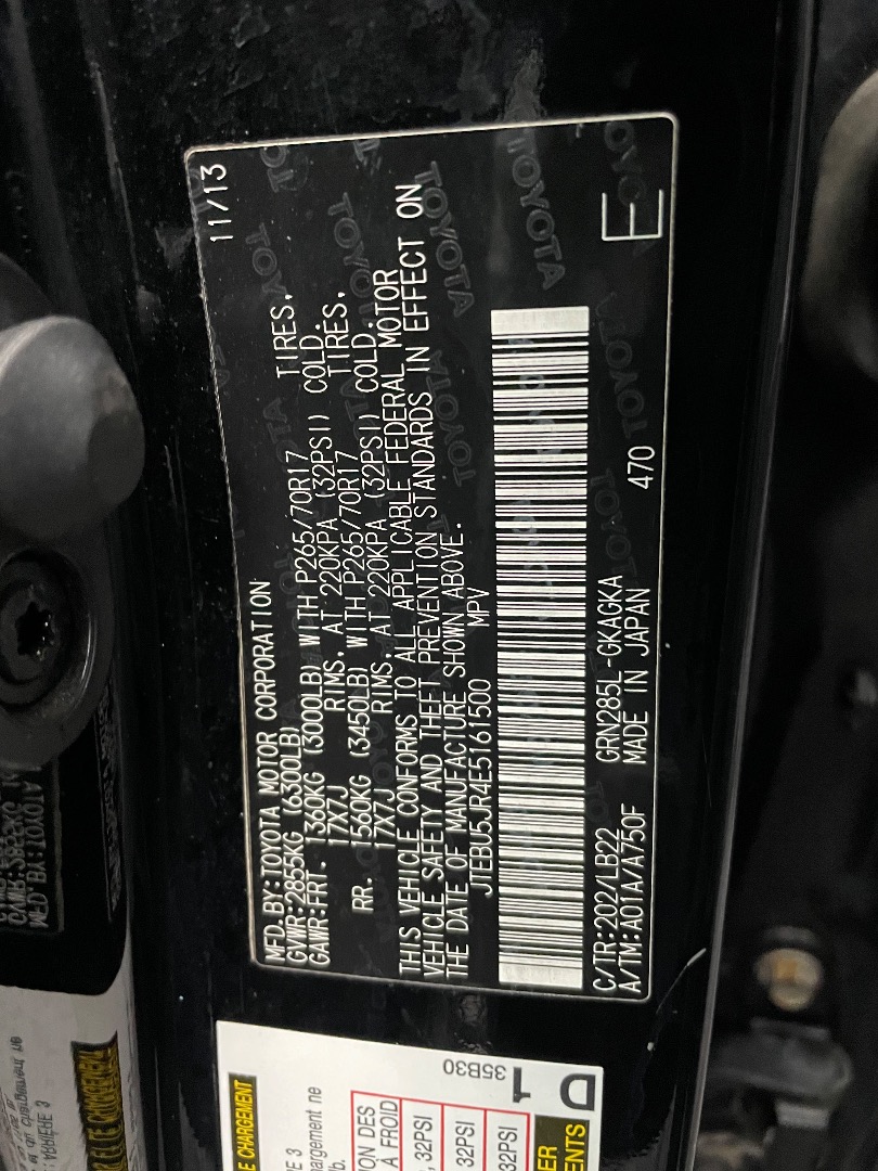 VIN #: JTEBU5JR4E5161500