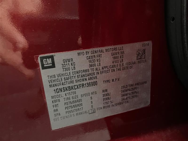 VIN #: 1GNSKBKCXFR136900