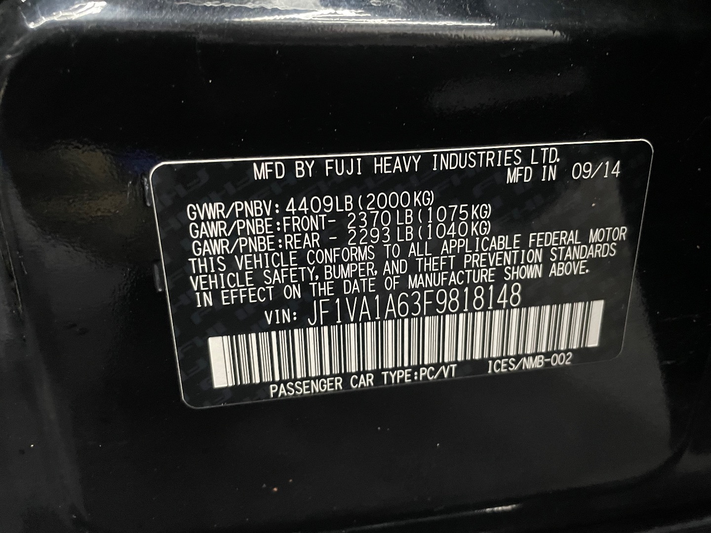 VIN #: JF1VA1A63F9818148