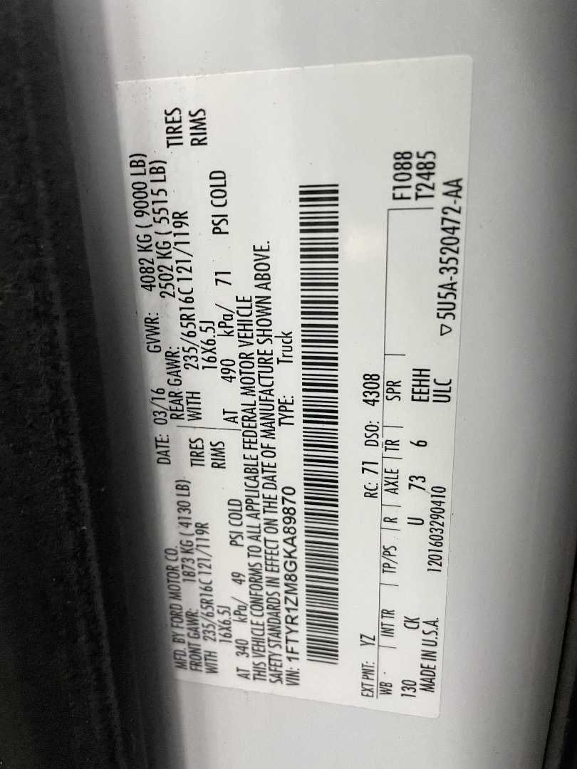 VIN #: 1FTYR1ZM8GKA89870
