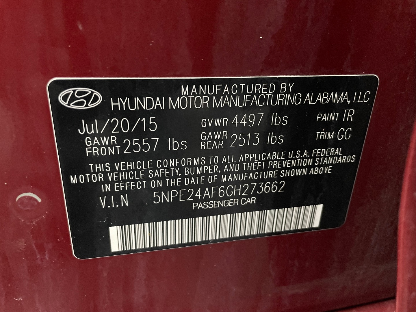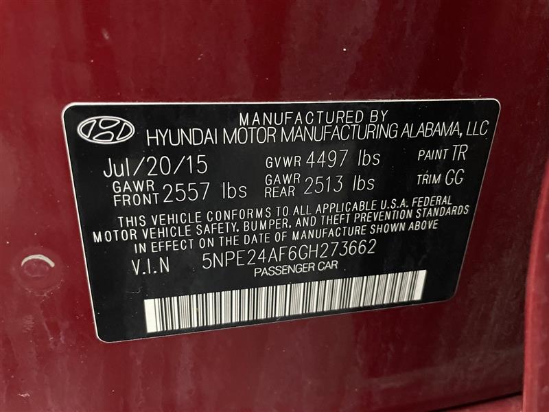 VIN #: 5NPE24AF6GH273662