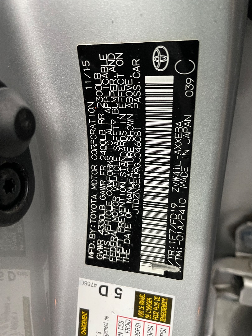 VIN #: JTDZN3EU9GJ046081