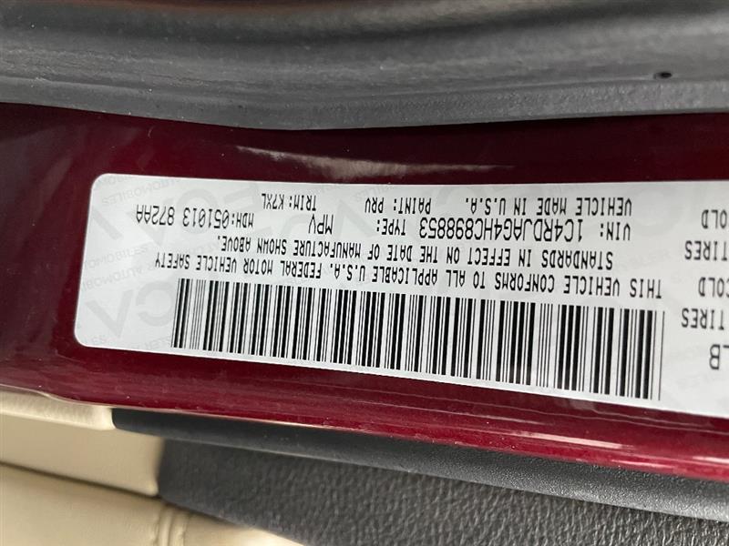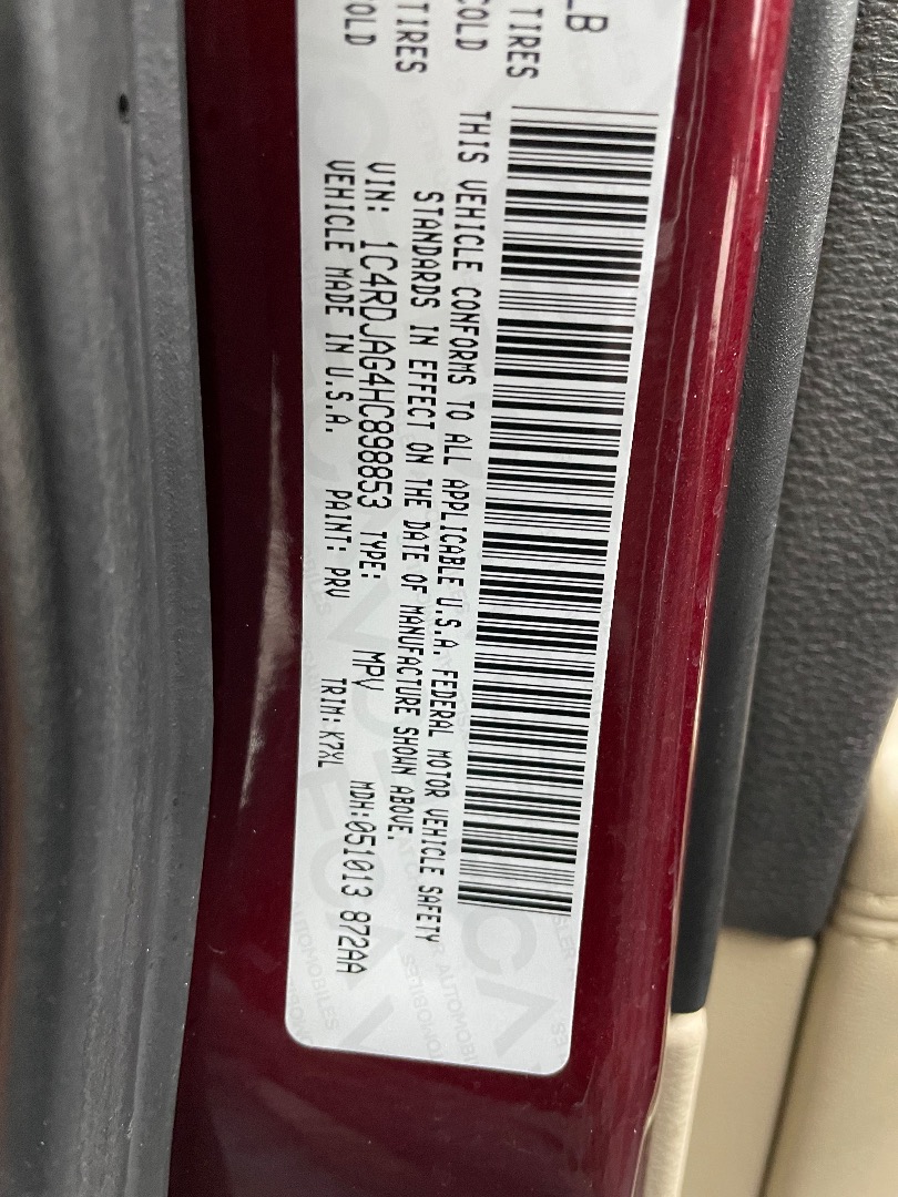 VIN #: 1C4RDJAG4HC898853