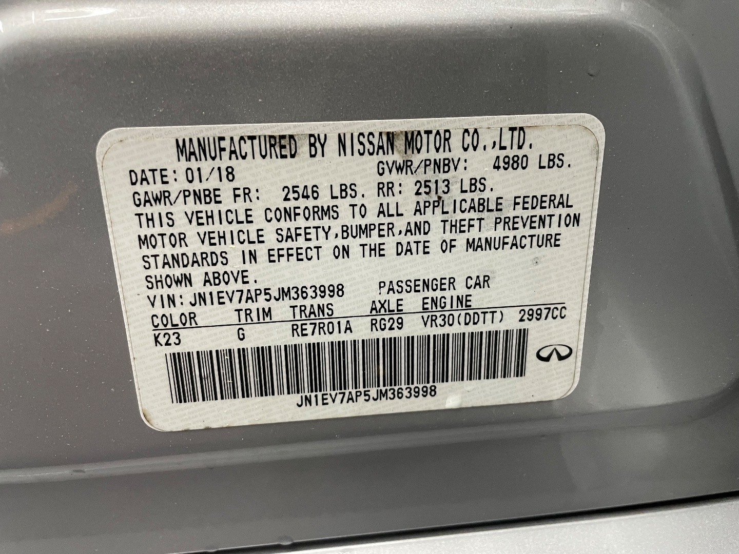 VIN #: JN1EV7AP5JM363998