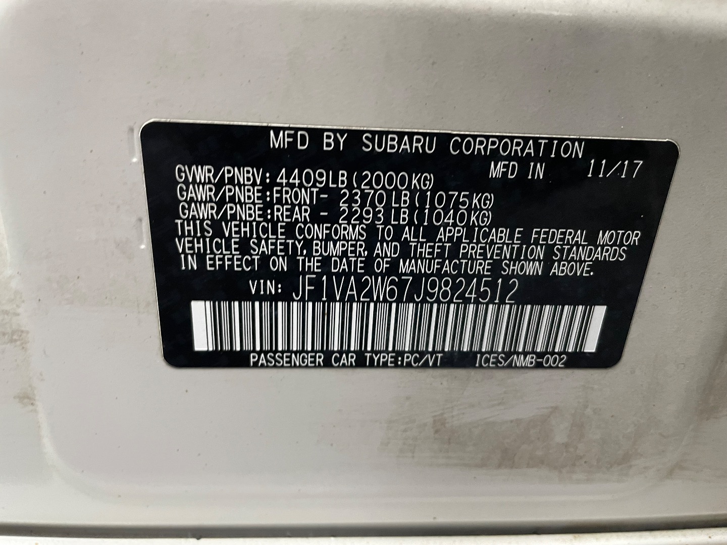 VIN #: JF1VA2W67J9824512