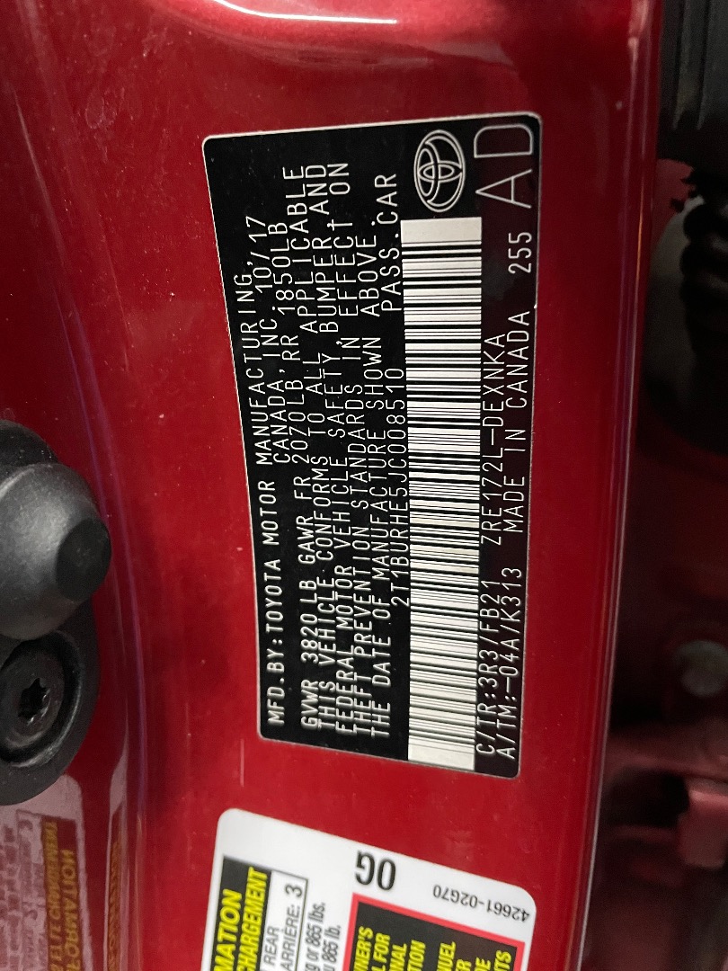 VIN #: 2T1BURHE5JC008510