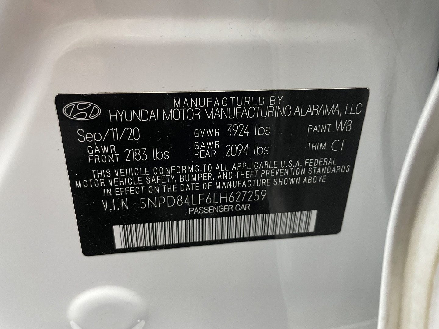VIN #: 5NPD84LF6LH627259